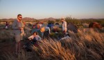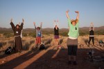 - Early morning stretching and saying good morning to the sun that we knew would bake us later in the day.