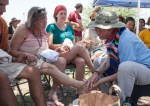 - Migrant Trail Walk registration and orientation meeting. Tom teaches the Logistics Team how to properly store the water jugs.